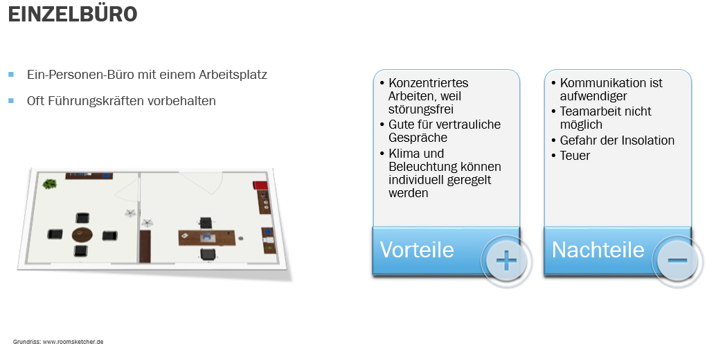 Bei der Auswahl einer geeigneten Arbeitsumgebung hilft vorallem das Wissen über die unterschiedlichen Büroformen ungemein.