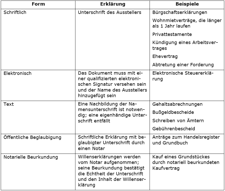 Formfreiheit bedeutet, ein Rechtsgeschäft kann in jeglicher Form abgeschlossen werden, also