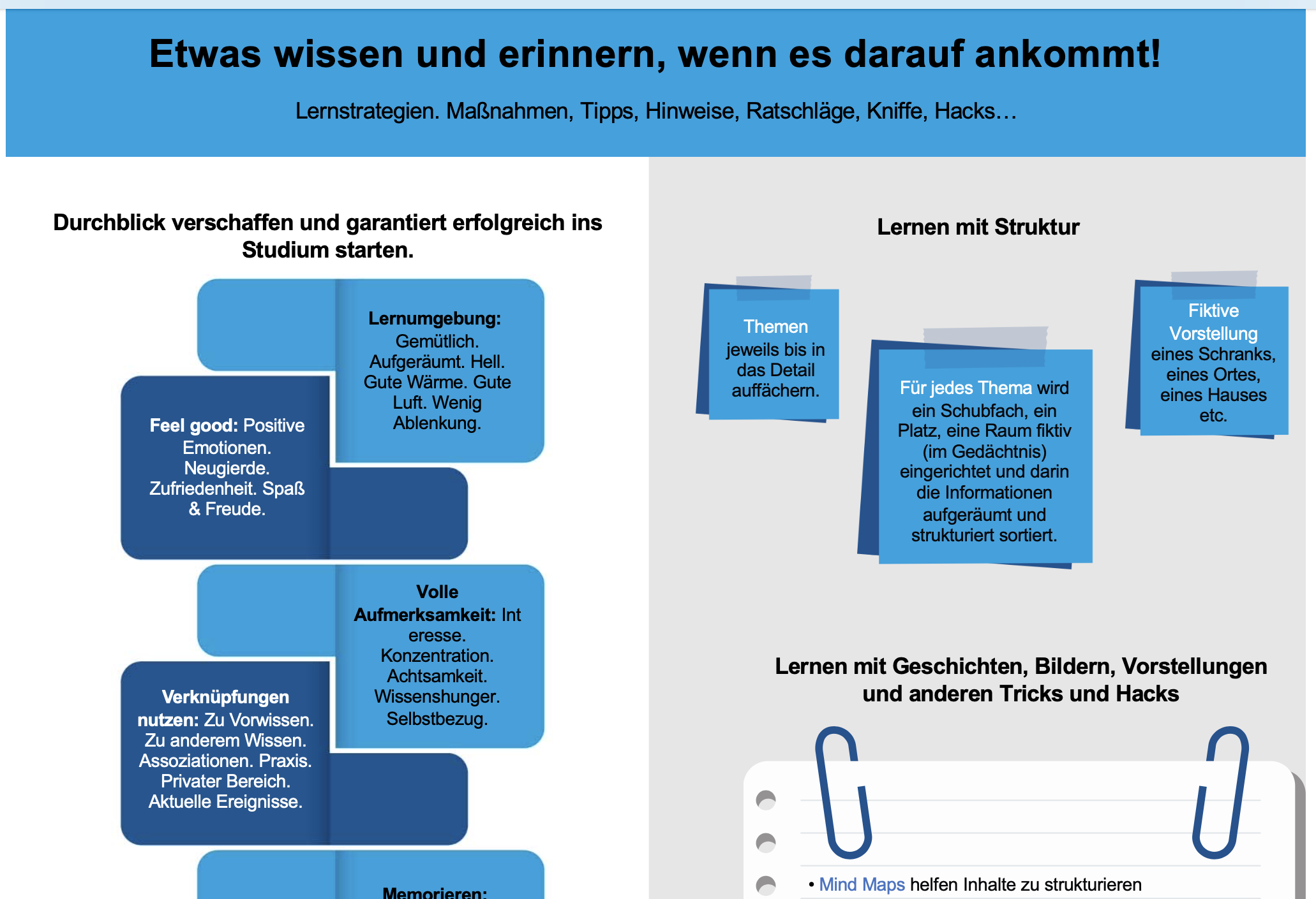 Gehirngerechtes Lernen: So kannst du dir beispielsweise mit einer Geschichte die Historie einfach merken. Noch besser: du denkstdie selber eine Geschichte aus. Der Erfolg: du wirst die Inhalte nie wieder vergessen :-) und z.B. in einem Gespräch bzw. einer Prüfungssituation sehr gut abrufen können.