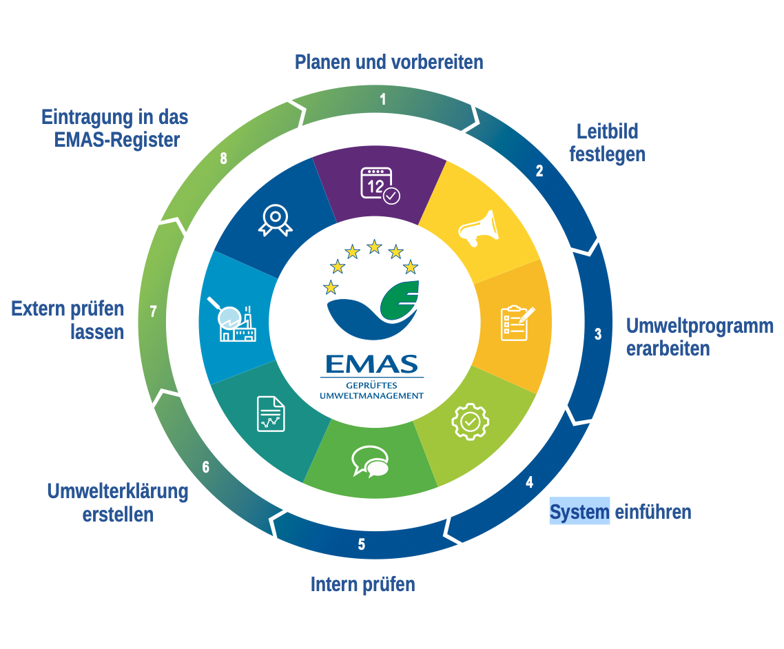 Folgend findest Du einen Leitfaden, wie die Umsetzung zur Beteiligung an EMAS erfolgt.