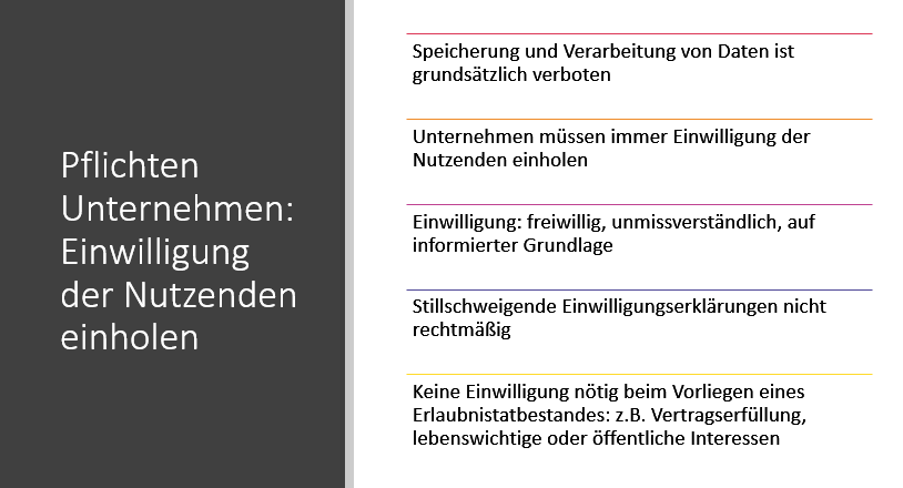 - Unternehmen müssen immer Einwilligung der Nutzenden einholen