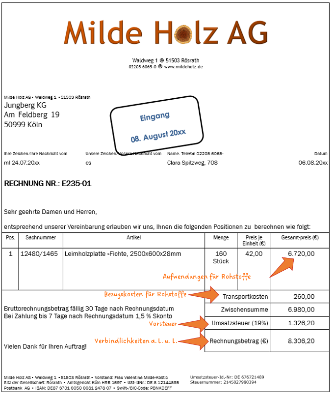 Die Bezugskosten als Teil der Eingangsrechnung der gekauften Werkstoffe/Handelswaren