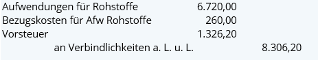 Bezugskosten für Afw Rohstoffe/Handelswaren