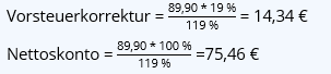 Da es sind beim Skonto um einen nachträglichen Preisnachlass handelt, sind die bei Rechnungseingang gebuchten Aufwendungen und die Vorsteuer zu korrigieren. Für die Korrektur der Aufwendungen wird das jeweils passende Unterkonto „Nachlässe“ genutzt.