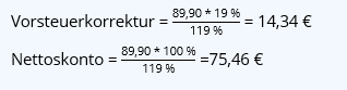 Bei einer nachträglichen Preisminderung führen die Nachlässe zu einer Mehrung des Eigenkapitals und werden deshalb im HABEN gebucht. Die Vorsteuer, Aktivkonto, mindert sich und wird ebenfalls im HABEN gebucht. Auch die Verbindlichkeiten werden um den Bruttobetrag der Rechnungskorrektur weniger und werden deshalb, eine Minderung eines Passivkontos, im Soll gebucht.