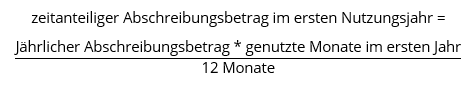 Im Anschaffungsjahr wird der Abschreibungsbetrag von den Anschaffungskosten berechnet. Der Abschreibungsbetrag in zweiten Nutzungsjahr wird vom Buchwert zu Beginn des zweiten Nutzungsjahres (=Buchwert zum Ende des Anschaffungsjahres) berechnet.