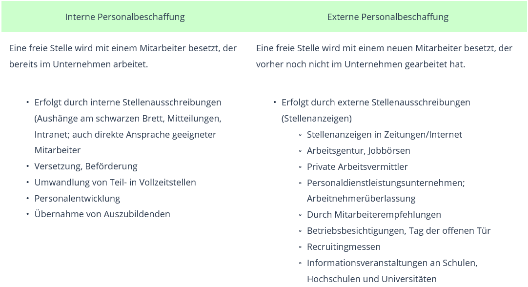 Die Hauptaufgabe der Personalbeschaffung besteht darin sicherzustellen, dass die erforderlichen Mitarbeiter in qualitativer, quantitativer Hinsicht und zum richtigen Zeitpunkt sowie am richtiger Ort zur Verfügung stehen.