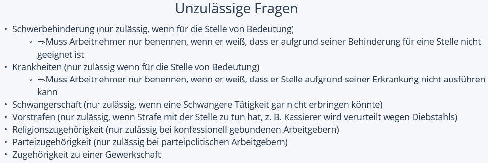- Gehaltsvorstellung, Urlaub, sonstige Bedingungen- Abschluss (weiteres Vorgehen, Dank für das Gespräch)