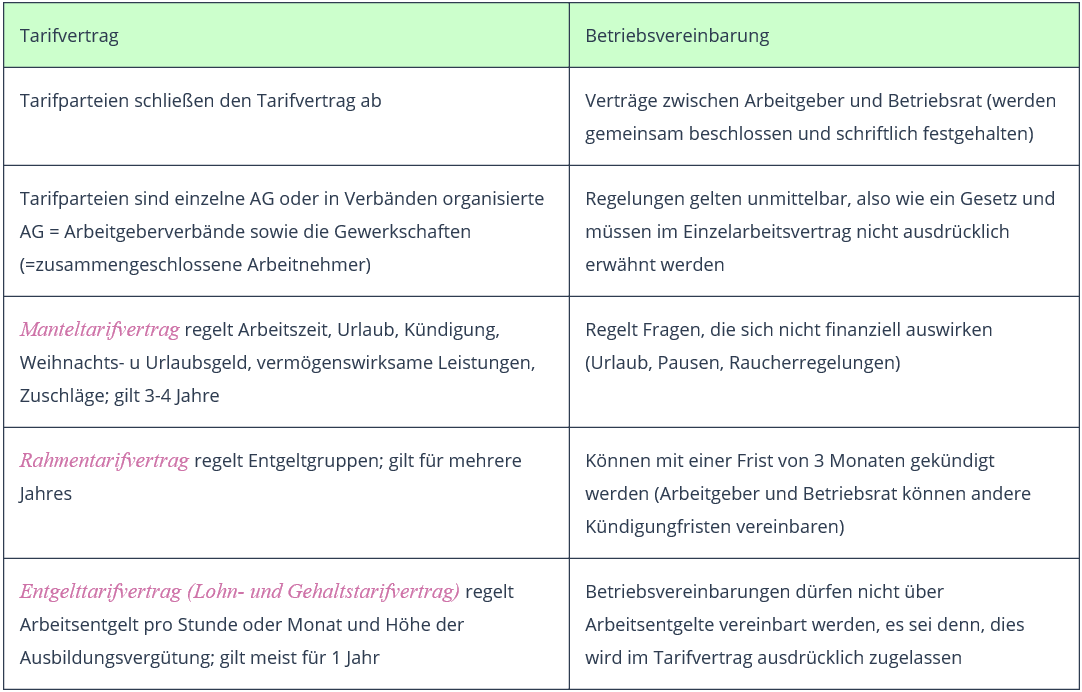 - Tarifverträge, Betriebsvereinbarungen, Dienstvereinbarungen