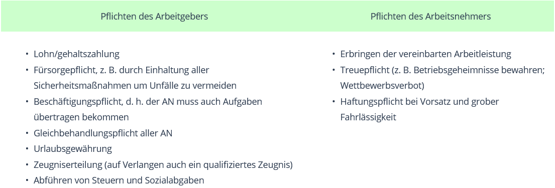 - wichtige Vereinbarungen des Arbeitsvertrages müssen innerhalb von 4 Wochen schriftlich festgehalten werden und dem Arbeitnehmer ausgehändigt werden