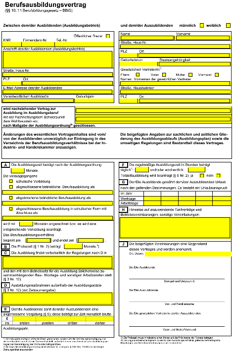 Die wichtigsten Inhalte des Ausbildungsvertrags sind: