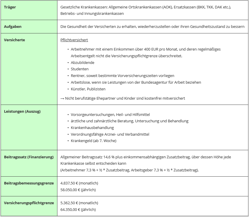Versicherungspflicht: In Deutschland sind nahezu 90 Prozent der Bevölkerung in der Sozialversicherung pflicht- oder freiwillig versichert. Für Arbeitnehmer besteht grundsätzlich zumindest in Deutschland eine Versicherungspflicht.