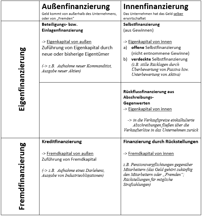 Finanzierung = dient der Kapitalbeschaffung