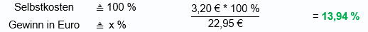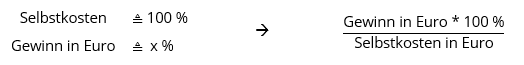 Die Berechnung des Gewinnzuschlagssatz in Prozent wird in Bezug auf die Selbstkosten berechnet.