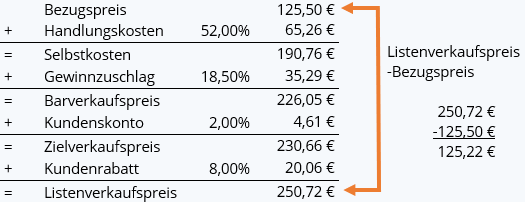 Berechnung des Listenverkaufspreis mit einem gegebenen Bezugspreis von 125,50 €