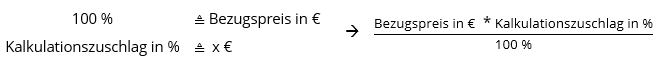 Liegt der Kalkulationszuschlagsatz in Prozent vor, so wird der Zuschlag in € auf Basis des Bezugspreises berechnet.