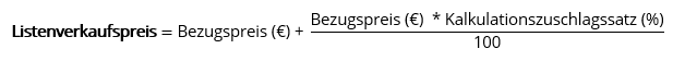 Bezugspreis in € + Kalkulationszuschlag in € = Listenverkaufspreis in €