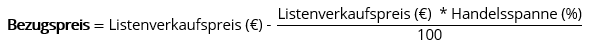 Um den Bezugspreis zu erhalten wird die Handelsspanne in € vom Listenverkaufspreis abgezogen.
