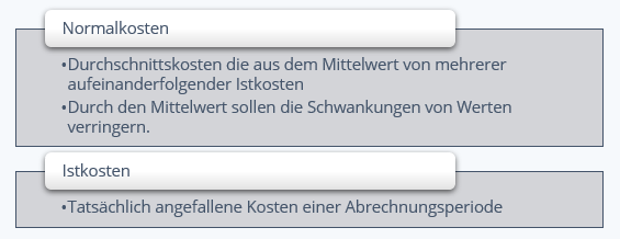 Bei der tatsächlichen Produktion von Gütern kann es zu Veränderung der Kosten kommen. Die tatsächlich angefallenen Kosten werden als Istkosten bezeichnet. Den Unterschied zwischen den geplanten Normalkosten und den tatsächlich angefallenen Istkosten werden in der Nachkalkulation gegenübergestellt.